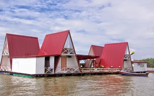 类似马来传统高脚屋,原来是这里的渡假屋。红树林里还有渡假屋,供民众入住以亲近大自然。